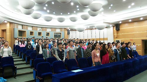 9月14日下午3:00,pg娱乐电子游戏官网入口2014级新生见面暨入学教育动员大会在科学会堂二层报告厅举行。pg娱乐电子游戏官网入口党委书记杨金山、院长孙鸣、党委副书记潘勋科、副院长张建强、史其威、刘明星,团委书记雷晶、声乐歌剧系主任韩再红、民乐系主任曹晓磊、管弦系主任解晓瑞,2014级新生辅导员成燕、秦滨及全体新生参加了动员会。新生入学教育动员大会由院党委副书记潘勋科主持。