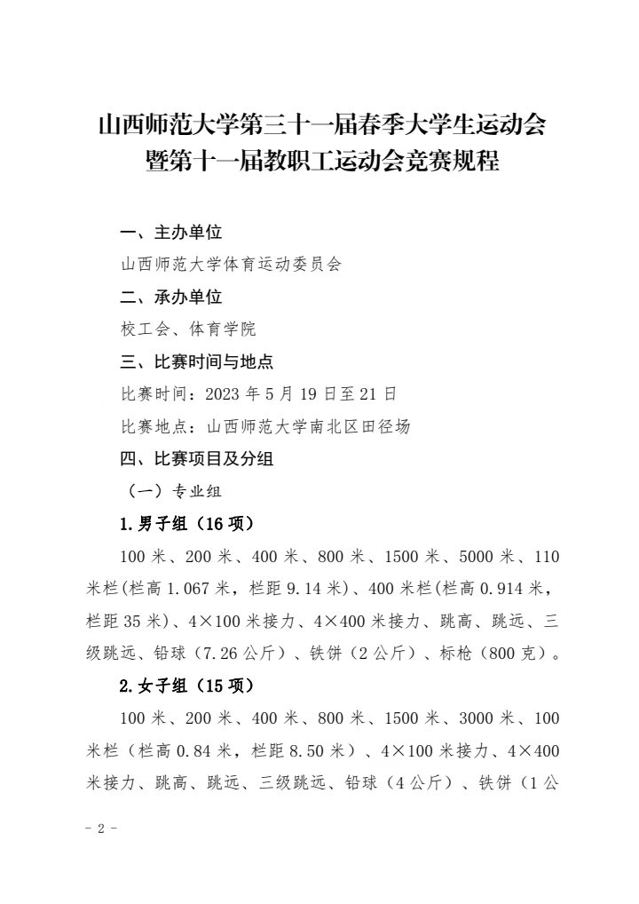 关于举办第三十一届春季大学生运动会暨十一届教职工运动会的通知