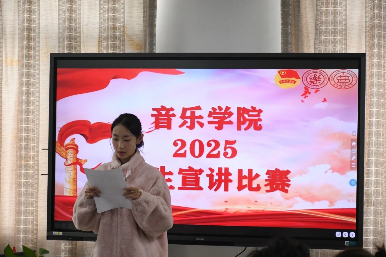 比赛现场气氛热烈。选手们紧扣上述主题,结合音乐专业特色与个人实践感悟,以生动案例、详实数据和富有感染力的表达,全方位展现新时代青年传承红色基因、创新传统文化、思考科技发展、践行志愿服务的青春风貌。整场比赛兼具理论深度与青春活力,充分彰显当代大学生与时代同频共振的责任担当。