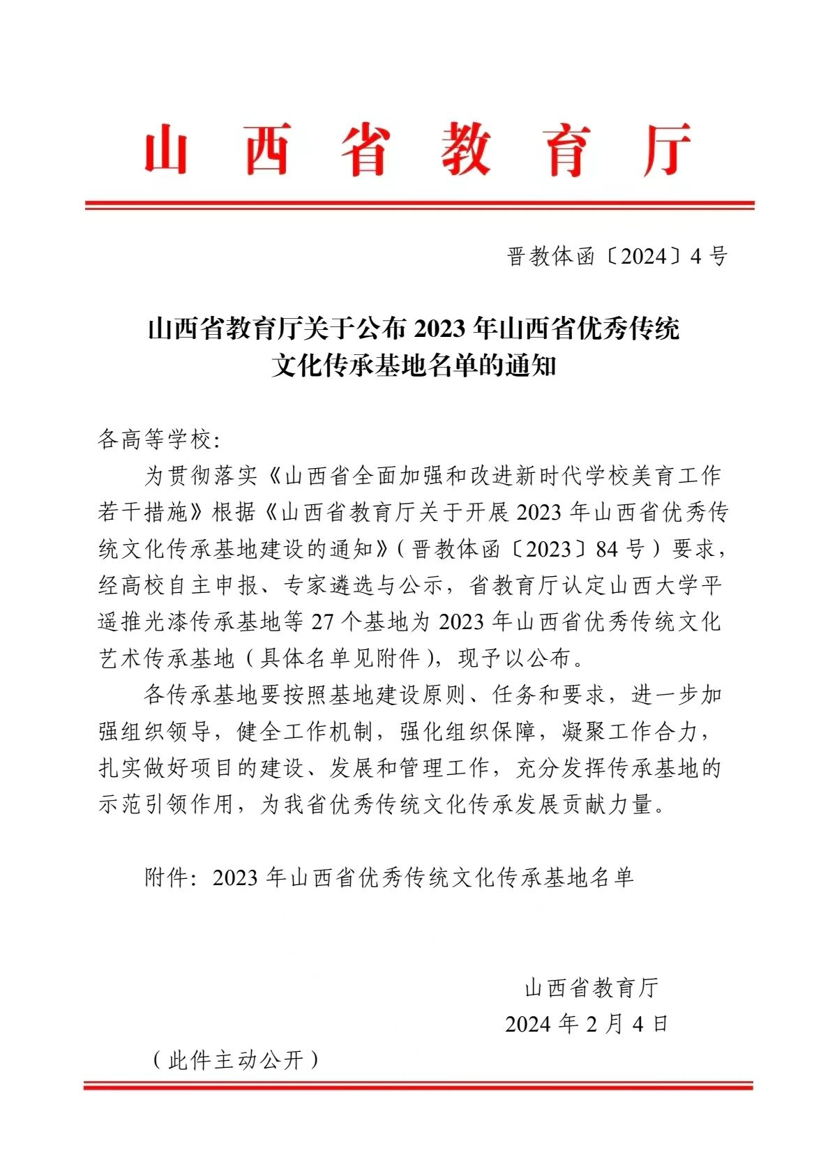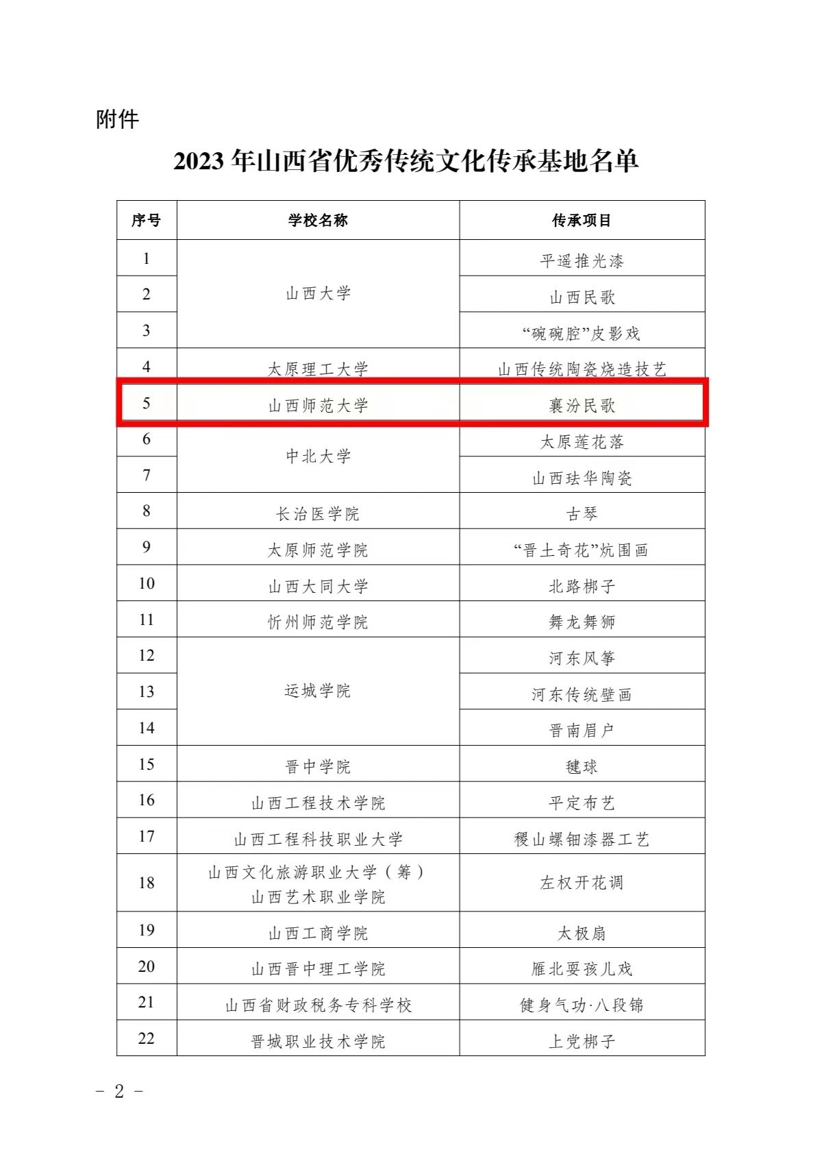 近日,省教育厅公布了2023年山西省优秀传统文化传承基地名单,由pg娱乐电子游戏官网入口pg娱乐电子游戏官网入口申报的襄汾民歌传承基地成功入选。