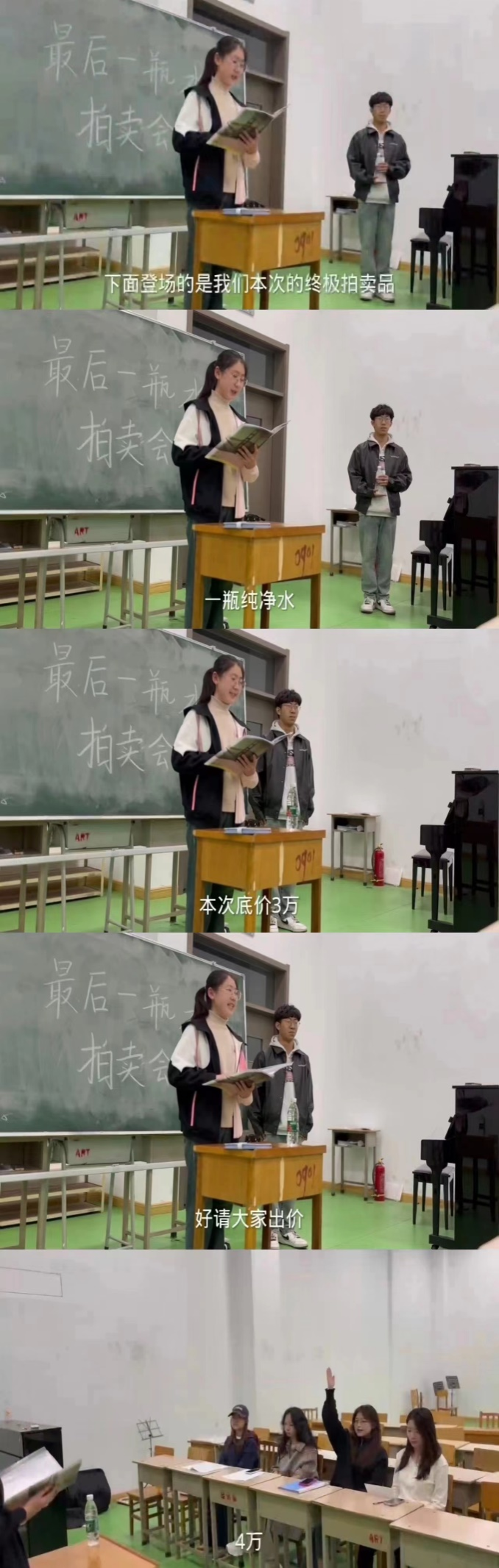在活动中,同学们分角色来表演“拍卖‘ 最后一瓶水’ ”的剧情,以情景剧的方式来宣传“节约用水”的理念。同学们在演绎剧情的过程中,切身地感受了水资源对于生命的重要性,增强了节约用水的意识。