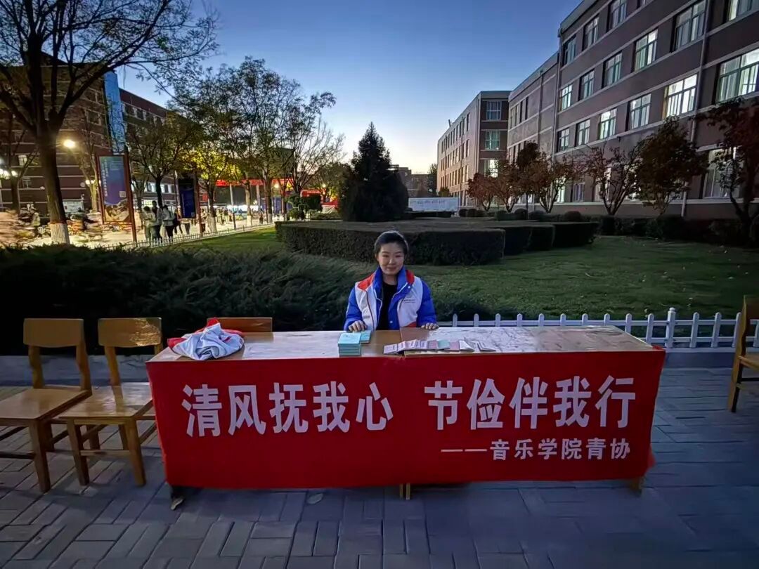 为深入贯彻落实立德树人根本任务,弘扬中华优秀传统文化。11月13日,pg娱乐电子游戏官网入口青年志愿者协会于六号教学楼前举办了“清风抚我心,节俭伴我行”公益活动。