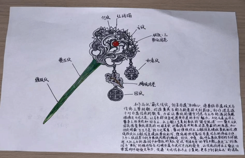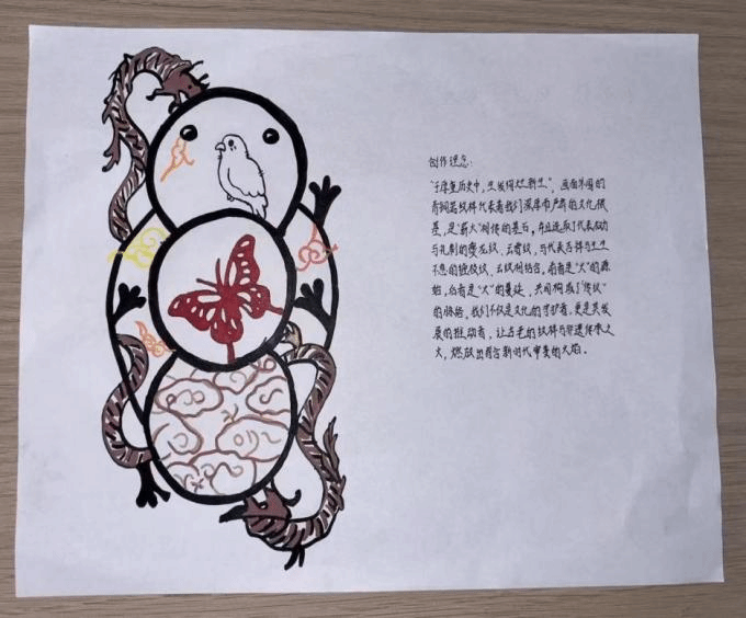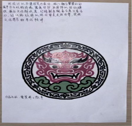 活动中,同学们深挖剪纸、刺绣、漆器等非遗纹样的文化内涵与工艺特点,以水彩、蜡笔等工具为媒,将传统纹样与当代审美结合,创新创作并写下传承感悟。作品将从主题契合度、纹样创新度、内容完整性三方面评选,优秀作品将集中展示。