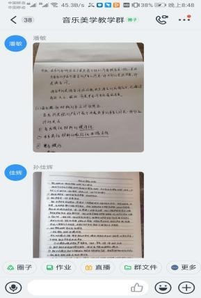 严格作业管理是网络教学获得良好效果的重要环节。首先是必须按时上交作业。其次是必须有学习笔迹。学习笔迹在教学过程中随时检查,课后作业必须写出自己的心得体会、对音乐的真情实感。自己的线上教学,还有不足,争取在随后教学中逐步改进。