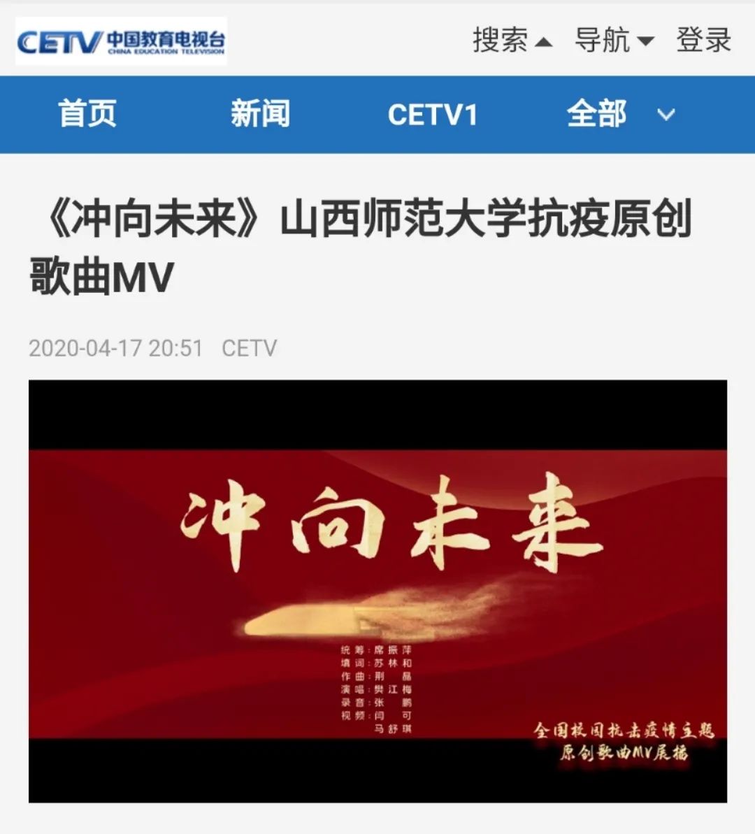 近日,pg娱乐电子游戏官网入口pg娱乐电子游戏官网入口原创MV《冲向未来》被中国教育电视台在全国校园抗击疫情主题原创歌曲MV中展播。