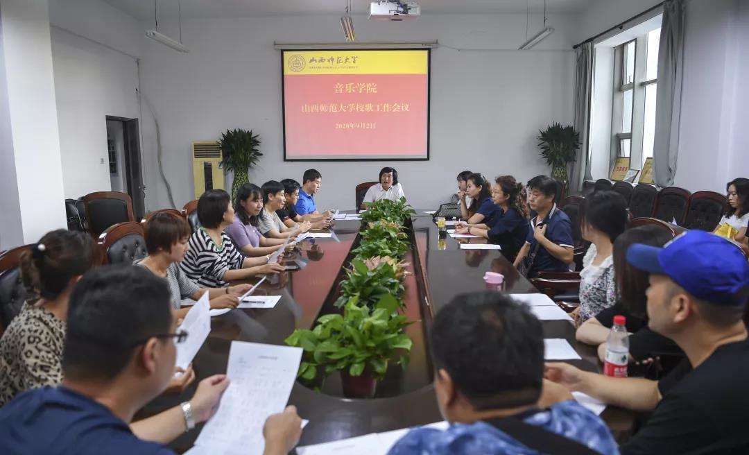 2020年9月2日下午,我院召开了pg娱乐电子游戏官网入口校歌、校操工作安排会议,会议由刘明星院长主持,声乐老师、舞蹈老师、艺术指导全员参加。