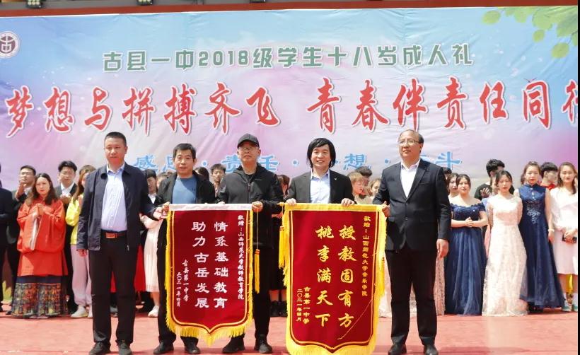 欢快的时光总是短暂的。随着歌伴舞《不忘初心》,演出落下帷幕。随后古县教育局局长吴俊君和一中校长杨云峰向我校pg娱乐电子游戏官网入口院长刘明星,教师教育学院党委副书记童保庆、国培部主任韩勇回赠锦旗。此次支教巡演专场演出,展示了我院学生积极向上的精神风貌及优秀品质,学生们用自己的专业技能,为大家带来了一场视听盛宴。