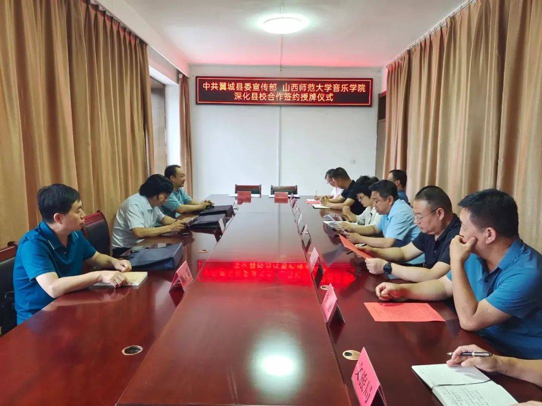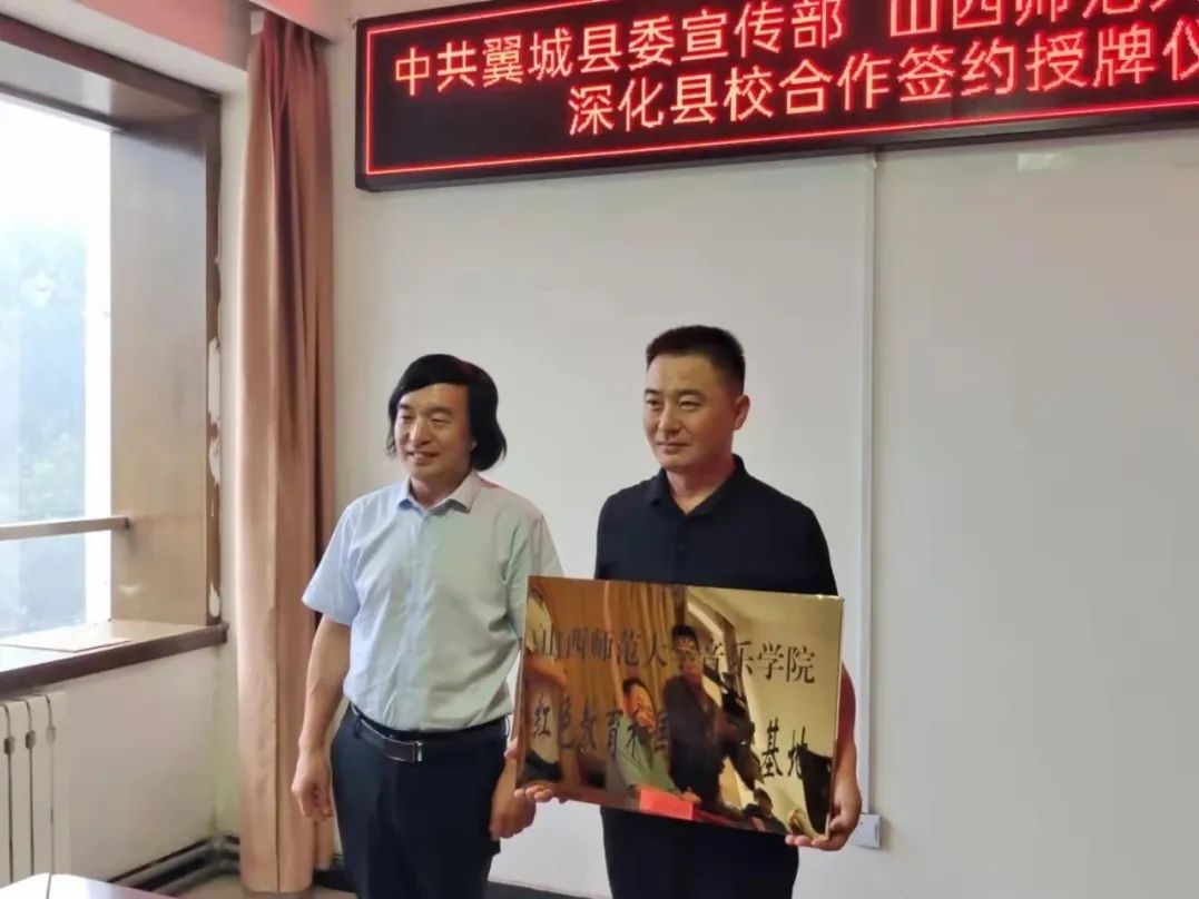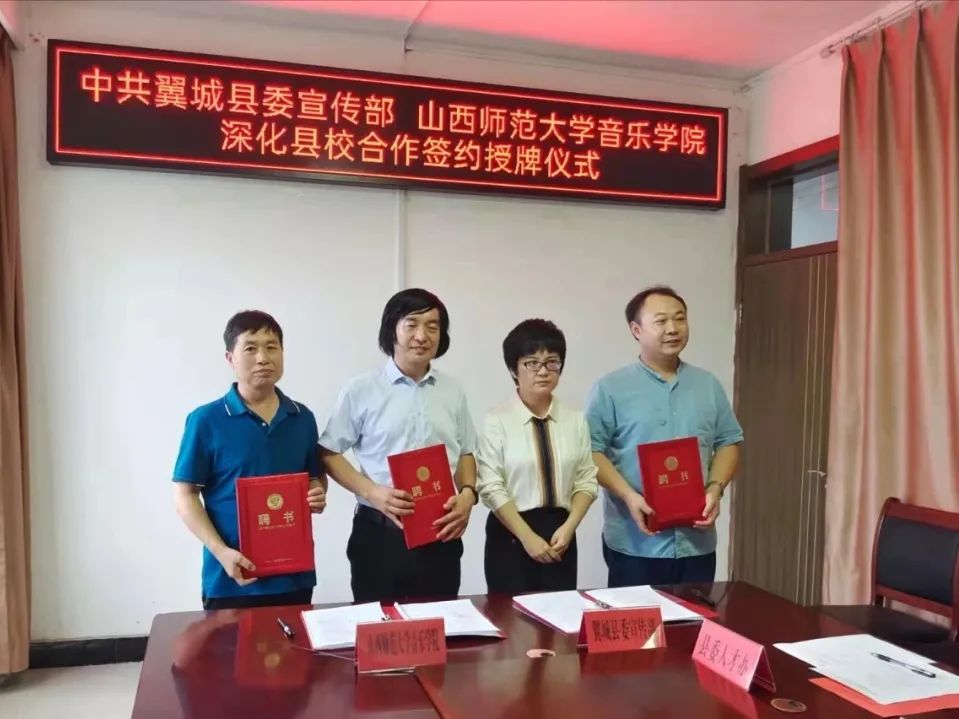 2021年8月30日,pg娱乐电子游戏官网入口pg娱乐电子游戏官网入口与中共翼城县委宣传部在翼城县文旅局举行了深化校县合作、共建红色教育和国情教育基地、智库合作基地和文化艺术人才培养基地签约授牌仪式。我院院长刘明星、副教授张建强、办公室主任陈文明参加了此次签约仪式。
