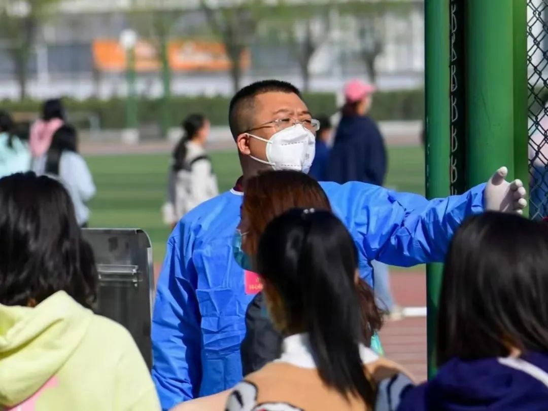 在疫情防控命令到达后,老师们便充当志愿者一起加入到抗疫工作中,监督各学院进行核酸检测。