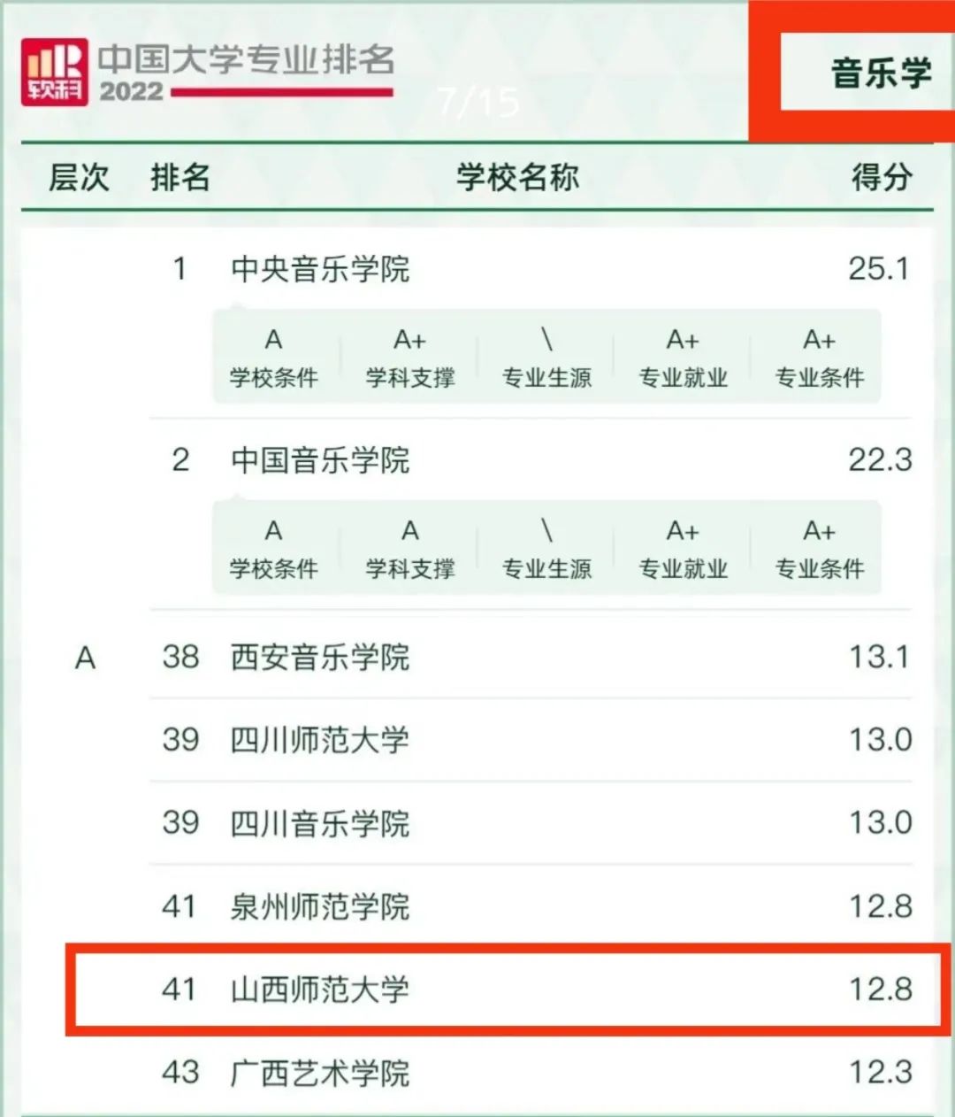 6月18日,高等教育专业评价机构“软科”,正式发布2022“软科中国大学专业排名”。我院音乐学专业在“软科中国大学专业排名”获评A等级,在山西同类专业排名第一。