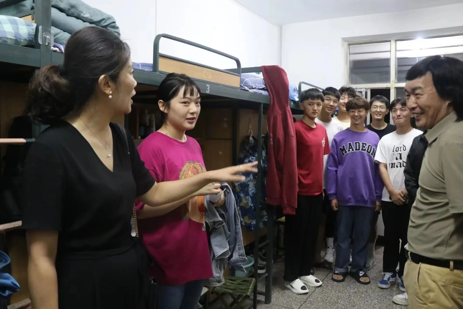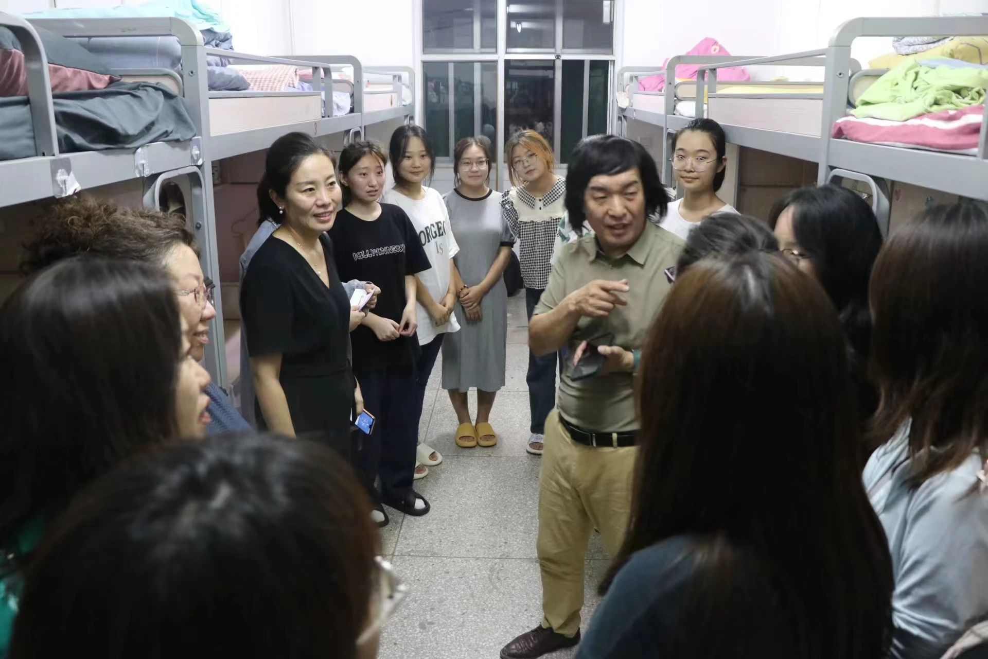 院领导和老师们来到新生宿舍,亲切地询问了新生们的情况,对校园环境和寝室条件是否满意等问题进行了解,为同学们提供了学习、生活、人际交往等方面的建议,教导同学们要树立好大学目标,养成良好的学习生活习惯,夯实专业基础,积极面对学习和生活中的挑战,并提醒大家遵守公寓管理规定,注意宿舍卫生和用电安全,及时调整作息,以良好的身体状态和精神面貌迎接军训。