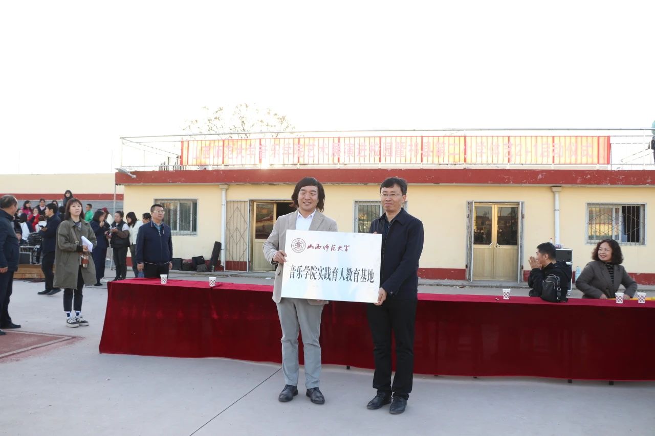 表演结束后,刘明星院长与祁县第二小学施建忠校长签订了合作协议,并授予祁县第二小学“pg娱乐电子游戏官网入口pg娱乐电子游戏官网入口实践育人教育基地”牌,祁县第二小学校长施建忠接牌。