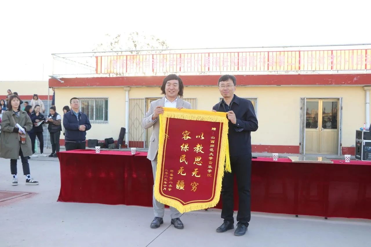 祁县第二小学也赠予我院一面锦旗,并对今天到来的师生表达了衷心的感谢,希望pg娱乐电子游戏官网入口pg娱乐电子游戏官网入口可以在将来为祁县二小带来越来越多这样的音乐盛典,让孩子们在音乐的氛围中成长。