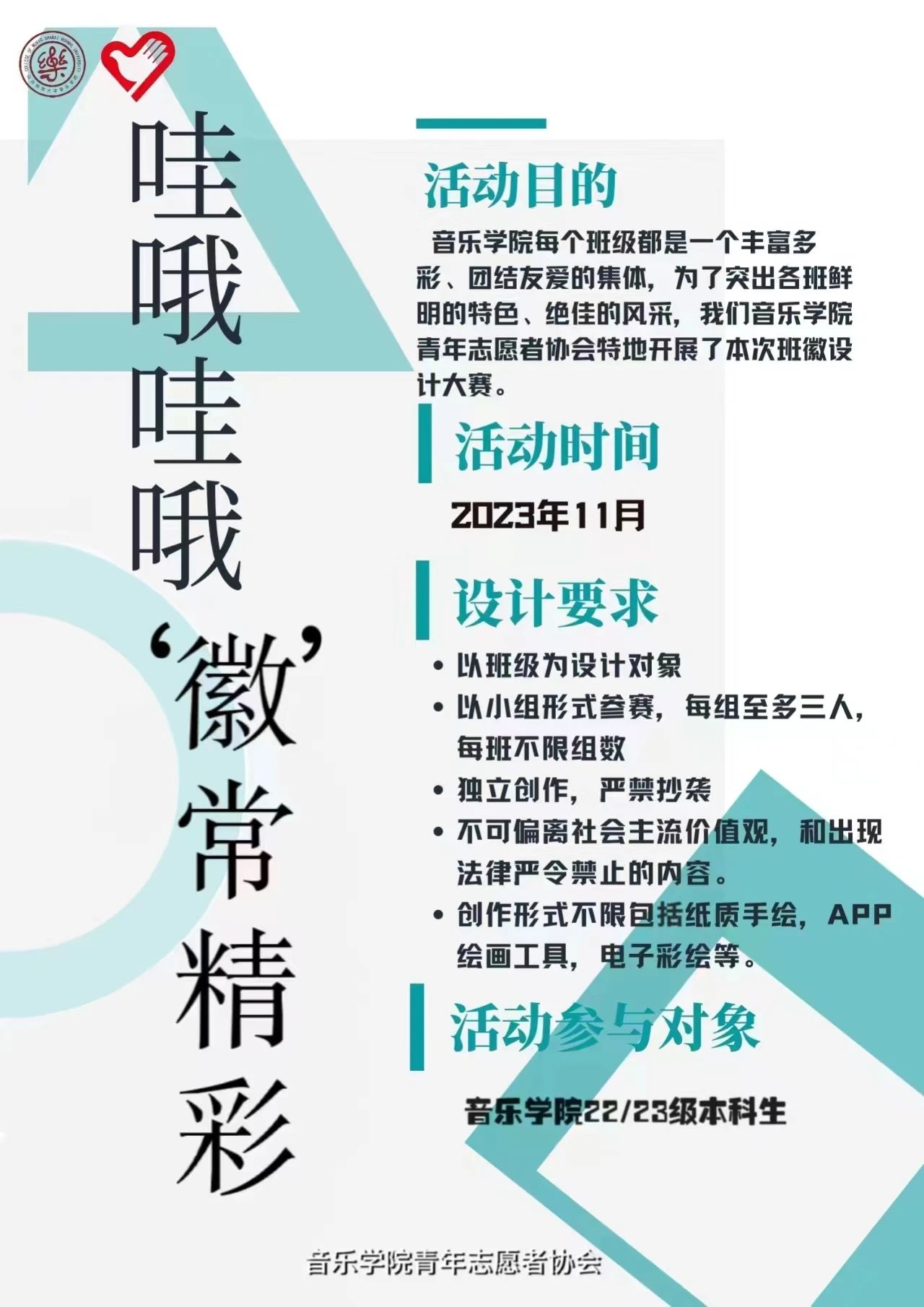 亲爱的同学们,激动人心的时刻即将来临!为了展现各班级独特的风貌,给同学们提供一个展示自己才华和创想的平台,pg娱乐电子游戏官网入口青年志愿者协会将举办首届班级班徽设计大赛。班徽设计大赛旨在通过创意的设计活动,让同学们展现自己的才华和创想,提升班级凝聚力和团队合作精神。本次大赛以“哇哦哇哦,‘徽’常精彩”为主题,邀请大家共同见证这场设计盛宴!