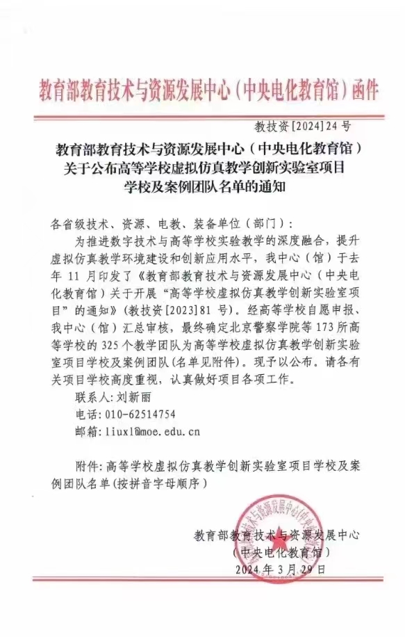 2024年3月29日,教育部教育技术与资源发展中心公布了高等学校虚拟仿真教学创新实验室项目学校及案例团队名单。我院院长刘明星教授的“虚拟仿真发声原理可视化教学实验室”历经自愿申报、层层筛选、不断完善、中心汇总审核等成功获批。
