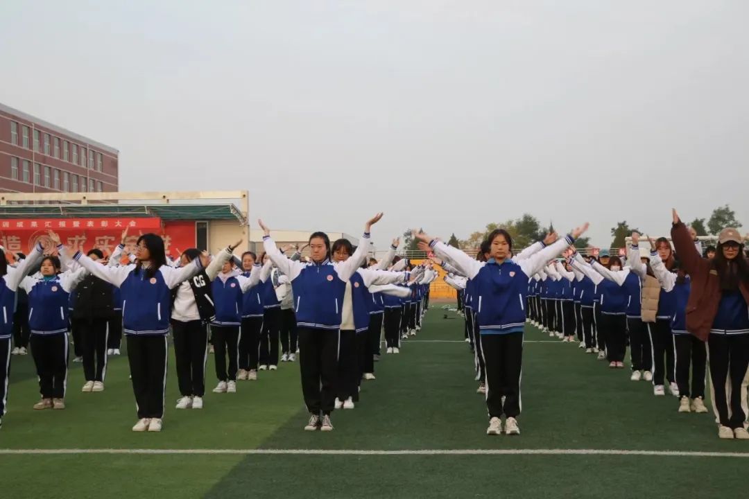 晨曦微露,全体师生肃立操场。国旗护卫队步伐铿锵,护送国旗至升旗台。激昂国歌奏响,升旗手振臂一挥,五星红旗徐徐升起,于蓝天映照下猎猎飘扬,师生仰目,齐唱国歌,庄重之情溢满校园。