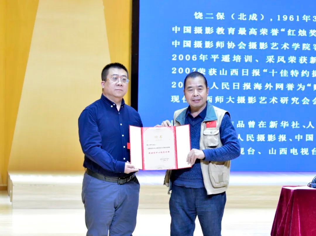 饶二保老师曾获得中国摄影教育最高荣誉“红烛奖”(终身荣誉称号),荣获中国摄影家协会摄影艺术学院客座教授等诸多头衔,其数千幅摄影作品曾在众多媒体刊发,黄河壶口作品多次被电视台播发。