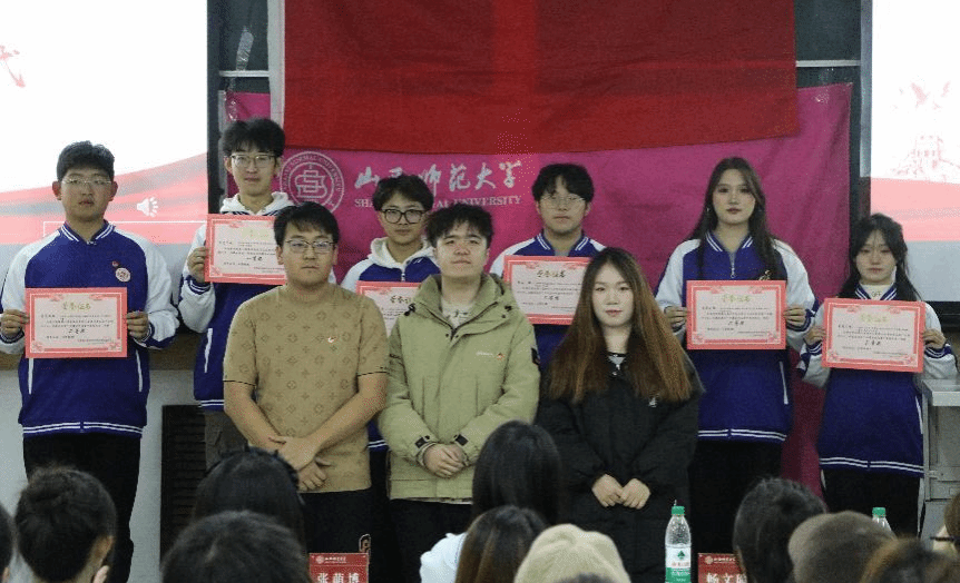 pg娱乐电子游戏官网入口学生团委副书记畅文瑜、学生会执行主席张萌博、青协主席团成员陈亚蕾为获得团体一、二、三等奖的小组颁发奖状并合影留念。专职辅导员苏睿老师为优秀青马标兵颁发奖状并合影留念。
