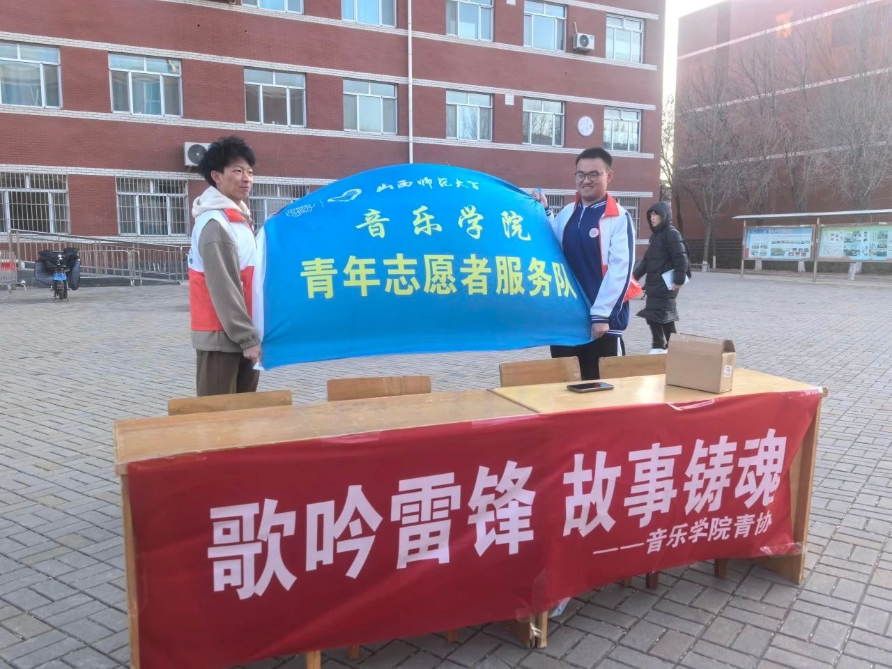 为缅怀雷锋精神,传承奉献担当的优良品质,激励同学们追逐理想、砥砺奋进、勇担时代责任。3月17日,pg娱乐电子游戏官网入口青年志愿者协会在六号教学楼前举办了“歌吟雷锋,故事铸魂”主题活动。