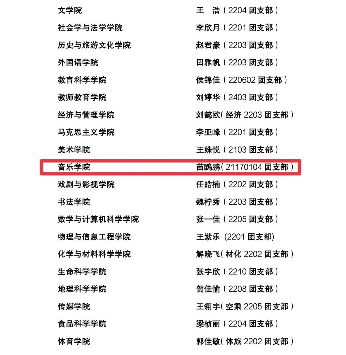 近日,我校团委发布《共青团pg娱乐电子游戏官网入口委员会关于“五四”各类先进评选表彰的决定》,表彰政治进步、品德高尚、贡献突出的先进集体和优秀个人。我院团委工作再创佳绩,荣获多项荣誉。其中,我院团委被授予“先进团委”荣誉称号;2202班团支部、2203班团支部和2302班团支部获得“先进团支部”荣誉称号;我院团委副书记李阳获“优秀团干部”荣誉称号;我院苗鵾鹏同学获“优秀团员标兵”荣誉称号,孙文涛同学获“优秀志愿者标兵”荣誉称号;我院李雅轩等14名学生获“校级优秀团员”荣誉称号,许译丹等34名学生获“院级优秀团员”荣誉称号。