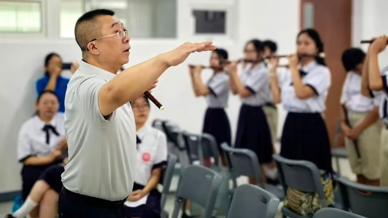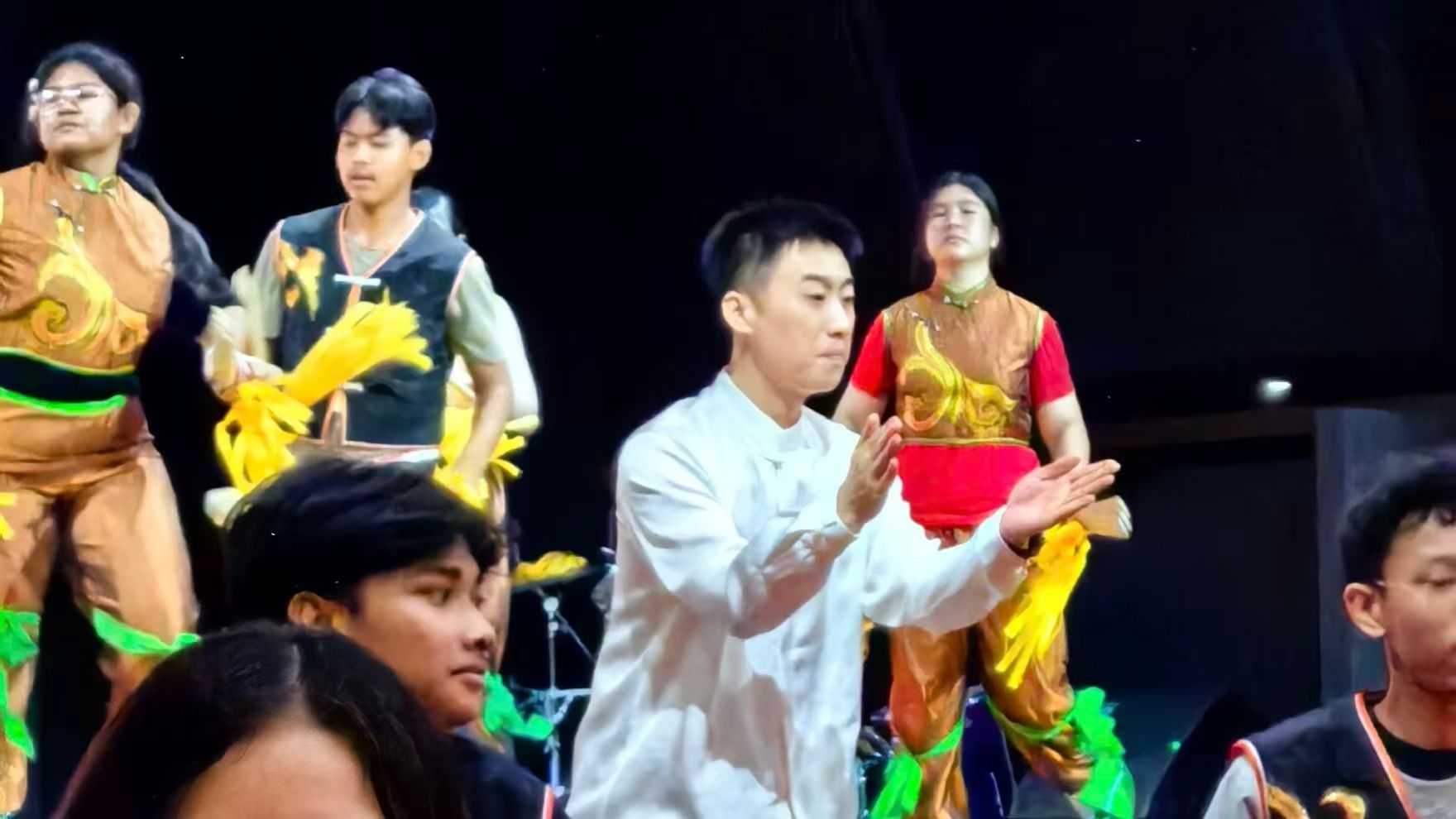 活动中,我院教师将“教学传艺”与“舞台展演”紧密结合:在教学环节,针对性开设山西民歌、竹笛演奏、翼城浑身板等课程,通过逐句教唱、技法拆解等方式,让印尼学生从初识到掌握基础演绎,推动中国传统文化落地生根。在汇报演出中,带来山西民歌联唱《交城山》《大红公鸡毛腿腿》,展现山西文化质朴热情;竹笛齐奏《我和你》,以笛声传递中印尼绵长友谊;合唱《采茶扑蝶》带观众领略了江南采茶的诗意与灵秀。在民族音乐与舞蹈交流环节,中国教师与印尼教师互教互学,不仅呈现了《庆丰收》山西翼城浑身板表演,明快鼓点、灵动舞姿再现丰收盛景,还共同演绎了印尼舞蹈与中国民族舞蹈,以多元艺术形式全方位展现中华文化魅力,彰显中外艺术交融之美。