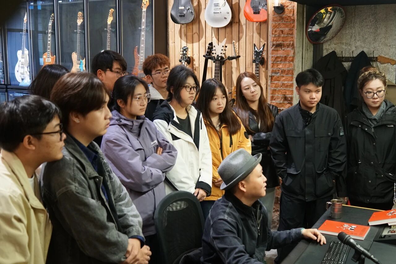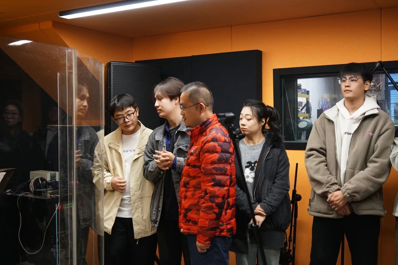 2025年11月7日,pg娱乐电子游戏官网入口民乐系教师高靖泽、作曲与理论系教师曹琴琴带领学生一同前往齿轮音乐工作室进行研究与学习。