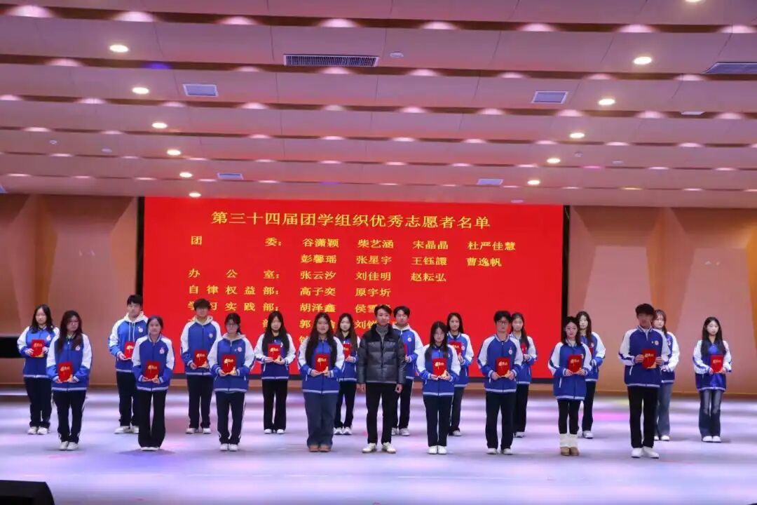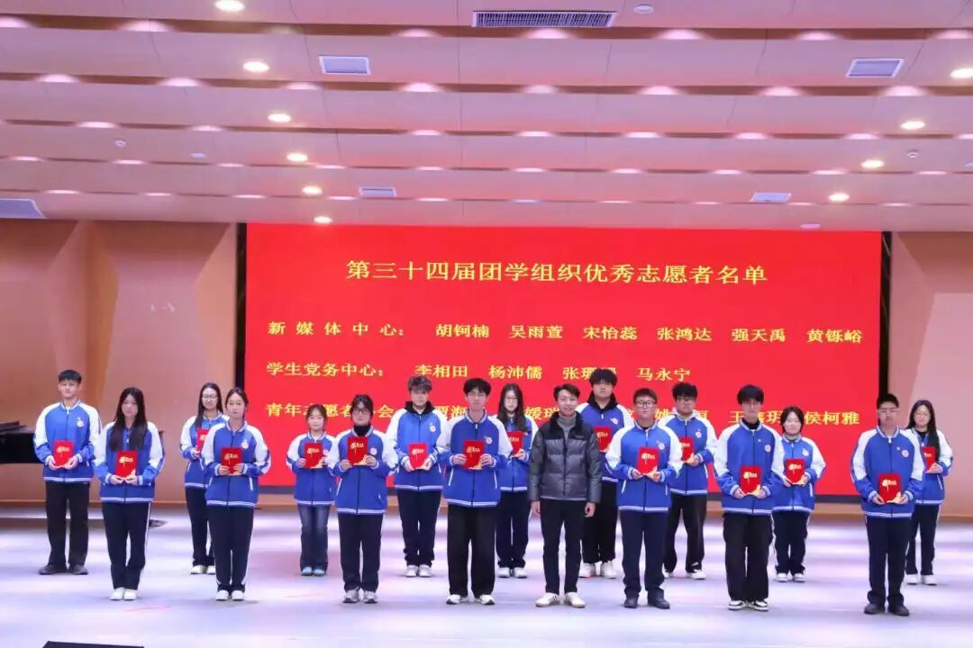 我院第三十一届学生会执行主席刘佳雄宣读第三十四届团学组织优秀志愿者名单并颁发荣誉证书。