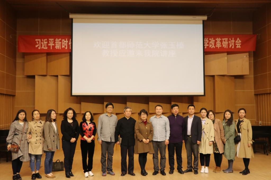 2018年4月24日下午,首都师范大学张玉榛教授在我校音乐厅作了题为《世界民族音乐与音乐教育》的学术报告。报告会由副院长张建强主持,我院部分教师和200余名学生聆听了报告。