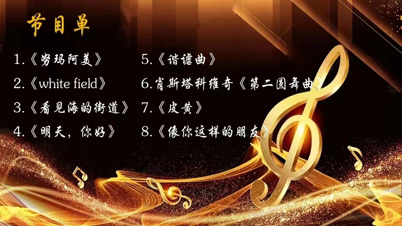 音乐如诗,每一曲都是情感的流淌,或宁静淡雅,或热烈激昂。琴声悠扬,笛音嘹亮,弦乐和鸣,一曲终了,余音绕梁。每一次的演出都是一次跨越时间和空间的对话。在音乐的道路上,我们倾听过去,展望未来!